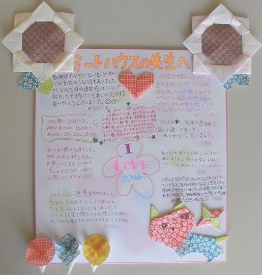 卒業生から素敵なボードをいただきました! いやぁ~ いいですねぇ~o(*^▽^*)o~♪ ありがとうございます!! みなさん新しい職場での活躍を祈っております☆彡 卒業してもまた遊びに来てくださいね。 いつでもお待ちしております(≧∀≦)/