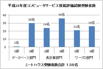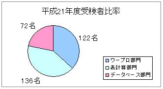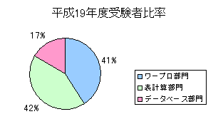 平成16年度はワープロ部門よりも表計算部門を受験される方が増え、データーベース部門にチャレンジされる方も増えました。