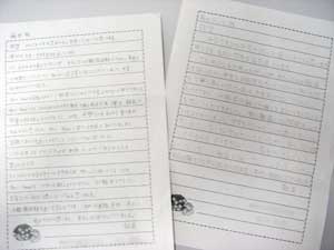 職場実習で身についた事や、感想など、とても丁寧にびっしり書いてくれたお礼状でした。