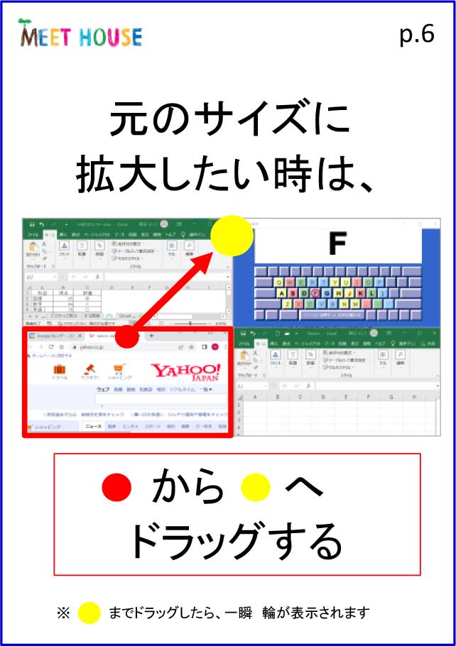 Windows Windows10 便利機能「スナップ機能」 2022.06.24 by meethouse 0 今回は、ちょっと面白い機能をご紹介いたします。 パソコンを使っていて、画面表示の大きさを変える方法は色々ありますが。。。 ドラッグだけで、画面表示を2分割や4分割にすることができます。 あっという間の一瞬技です。 実際にやってみると、新しい感覚で面白い機能です。 詳細をご覧になって、是非お試しください(^o^)丿