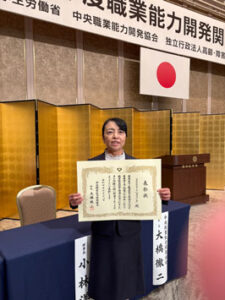 この度、11月に東京の明治記念館にて、厚生労働省所管、中央職業能力開発協会より、令和7年度中央職業能力開発協会会長表彰を受賞いたしました。
